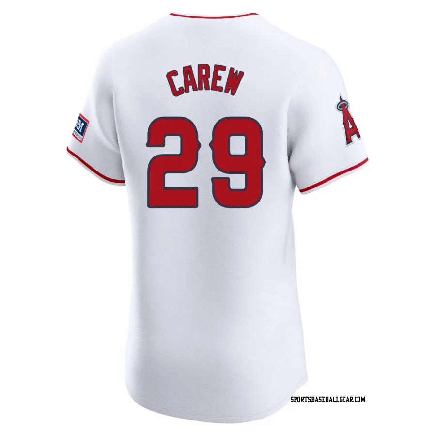 Get the Rod Carew Men's Los Angeles Angels White Elite Home Patch Jersey, showcasing the latest design and premium quality for dedicated fans. Elevate your baseball wardrobe now!