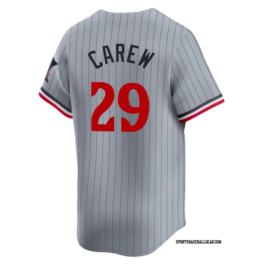 Get the Rod Carew Youth Minnesota Twins Gray Limited Road Jersey, showcasing the latest design and premium quality for dedicated fans. Elevate your baseball wardrobe now!