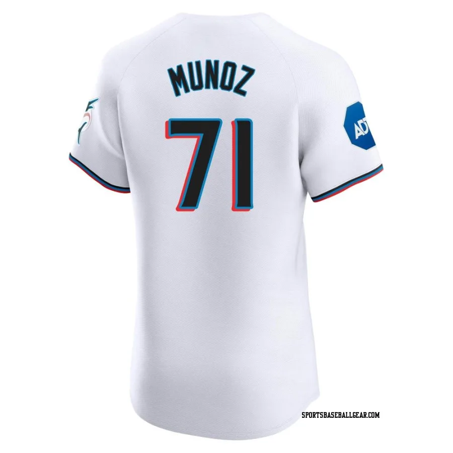 Get the Roddery Munoz Men's Miami Marlins White Elite Home Patch Jersey, showcasing the latest design and premium quality for dedicated fans. Elevate your baseball wardrobe now!