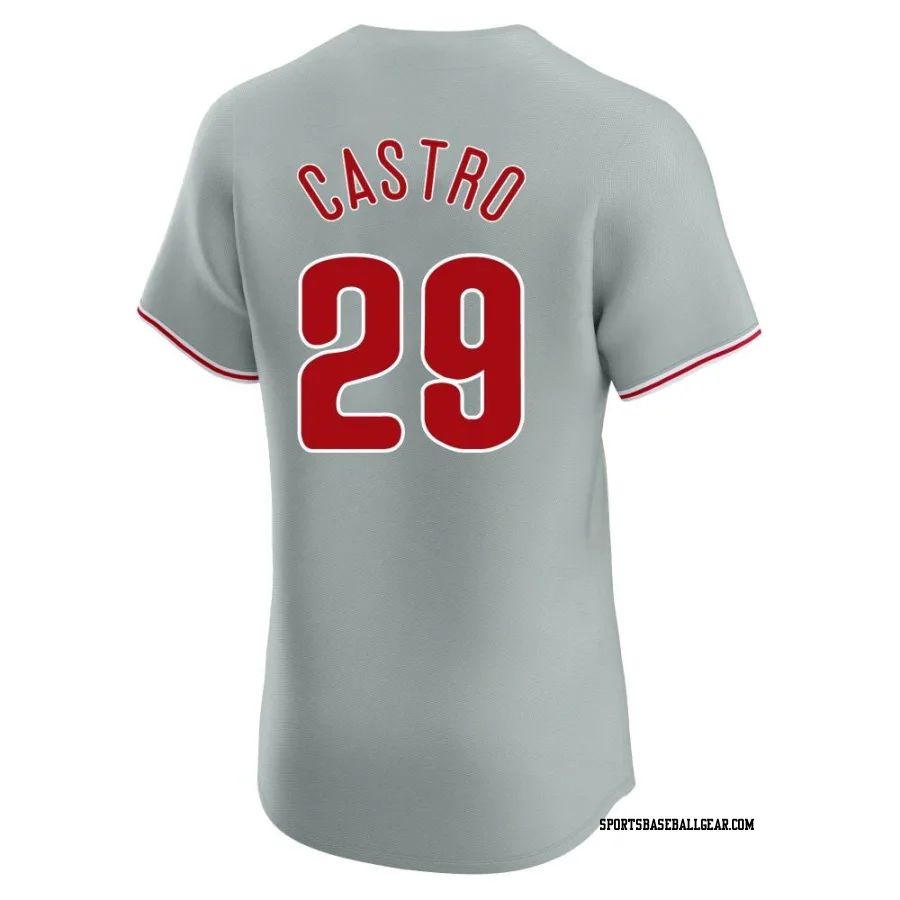 Get the Rodolfo Castro Men's Philadelphia Phillies Gray Elite Road Jersey, showcasing the latest design and premium quality for dedicated fans. Elevate your baseball wardrobe now!