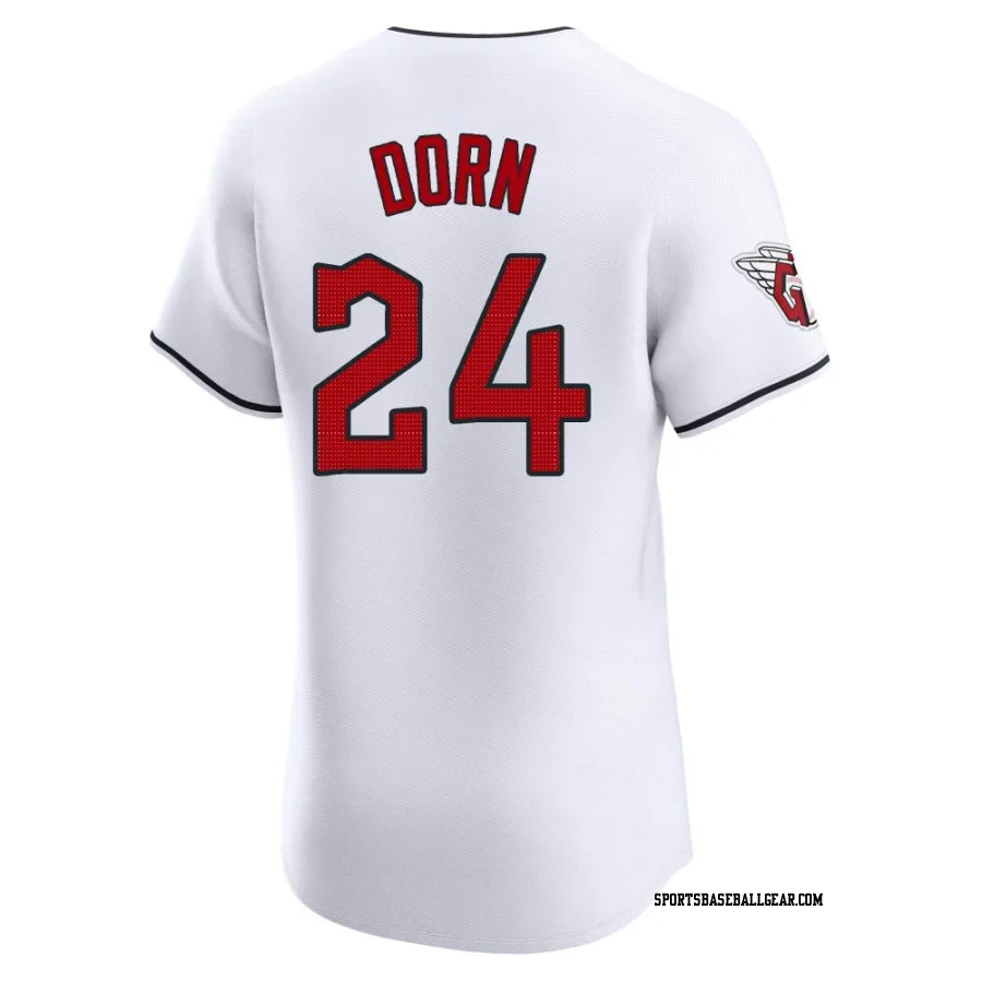 Get the Roger Dorn Men's Cleveland Guardians White Elite Home Jersey, showcasing the latest design and premium quality for dedicated fans. Elevate your baseball wardrobe now!