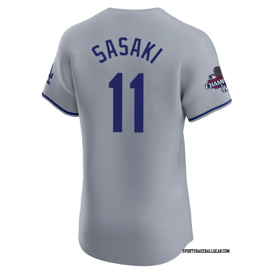 Roki Sasaki Men's Los Angeles Dodgers Gray Elite Road World Series Champions Jersey