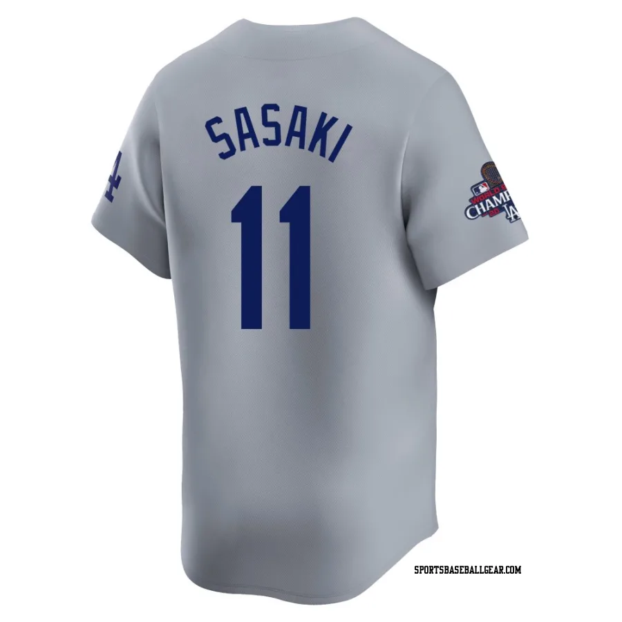 Get the Roki Sasaki Youth Los Angeles Dodgers Gray Limited Away World Series Champions Jersey, showcasing the latest design and premium quality for dedicated fans. Elevate your baseball wardrobe now!