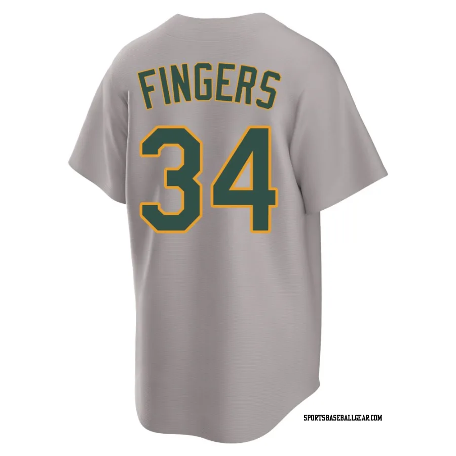 Get the Rollie Fingers Men's Oakland Athletics Gray Replica Away 2.0 Jersey, showcasing the latest design and premium quality for dedicated fans. Elevate your baseball wardrobe now!