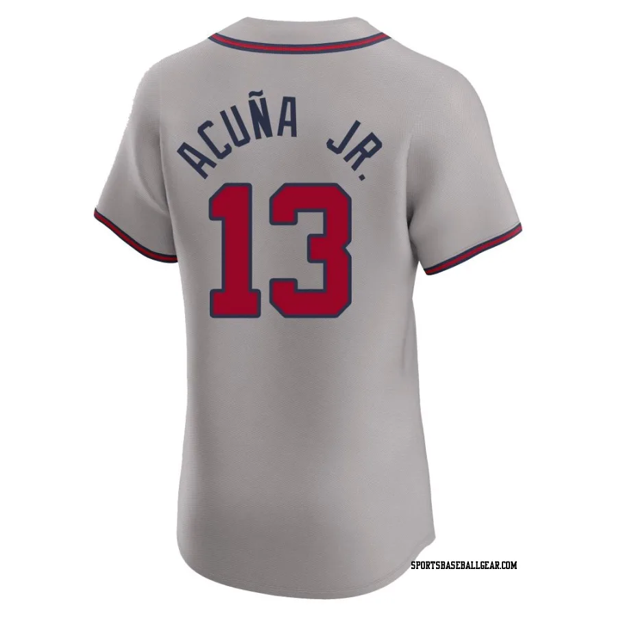Get the Ronald Acuna Jr. Men's Atlanta Braves Gray Elite Road Jersey, showcasing the latest design and premium quality for dedicated fans. Elevate your baseball wardrobe now!