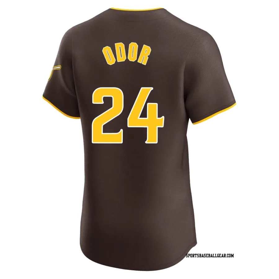 Get the Rougned Odor Men's San Diego Padres Brown Elite Road Vapor Premier Jersey, showcasing the latest design and premium quality for dedicated fans. Elevate your baseball wardrobe now!