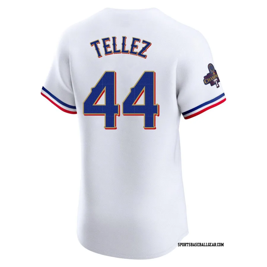 Get the Rowdy Tellez Men's Texas Rangers Gold Elite White 2024 Collection Jersey, showcasing the latest design and premium quality for dedicated fans. Elevate your baseball wardrobe now!