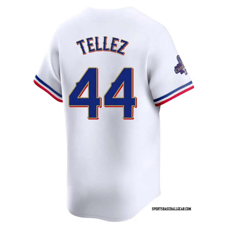 Get the Rowdy Tellez Youth Texas Rangers Gold Limited White 2024 Collection Jersey, showcasing the latest design and premium quality for dedicated fans. Elevate your baseball wardrobe now!