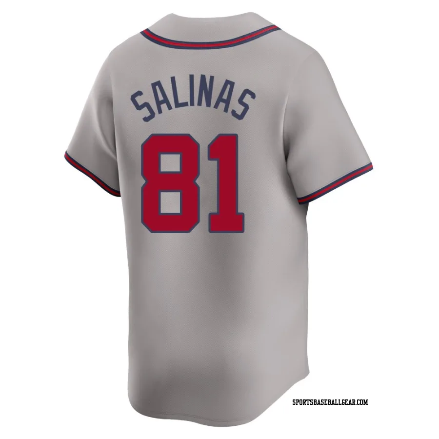 Get the Royber Salinas Men's Atlanta Braves Gray Limited Away Jersey, showcasing the latest design and premium quality for dedicated fans. Elevate your baseball wardrobe now!