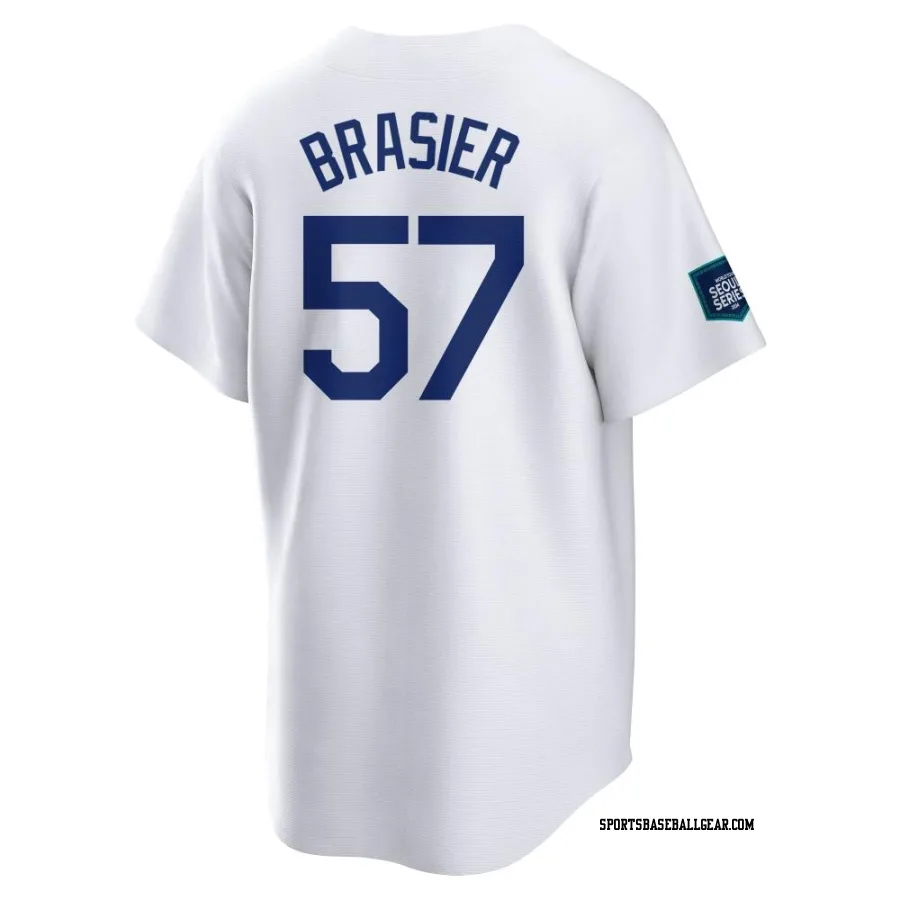 Get the Ryan Brasier Men's Los Angeles Dodgers White Replica 2024 World Tour Seoul Series Home Jersey, showcasing the latest design and premium quality for dedicated fans. Elevate your baseball wardrobe now!