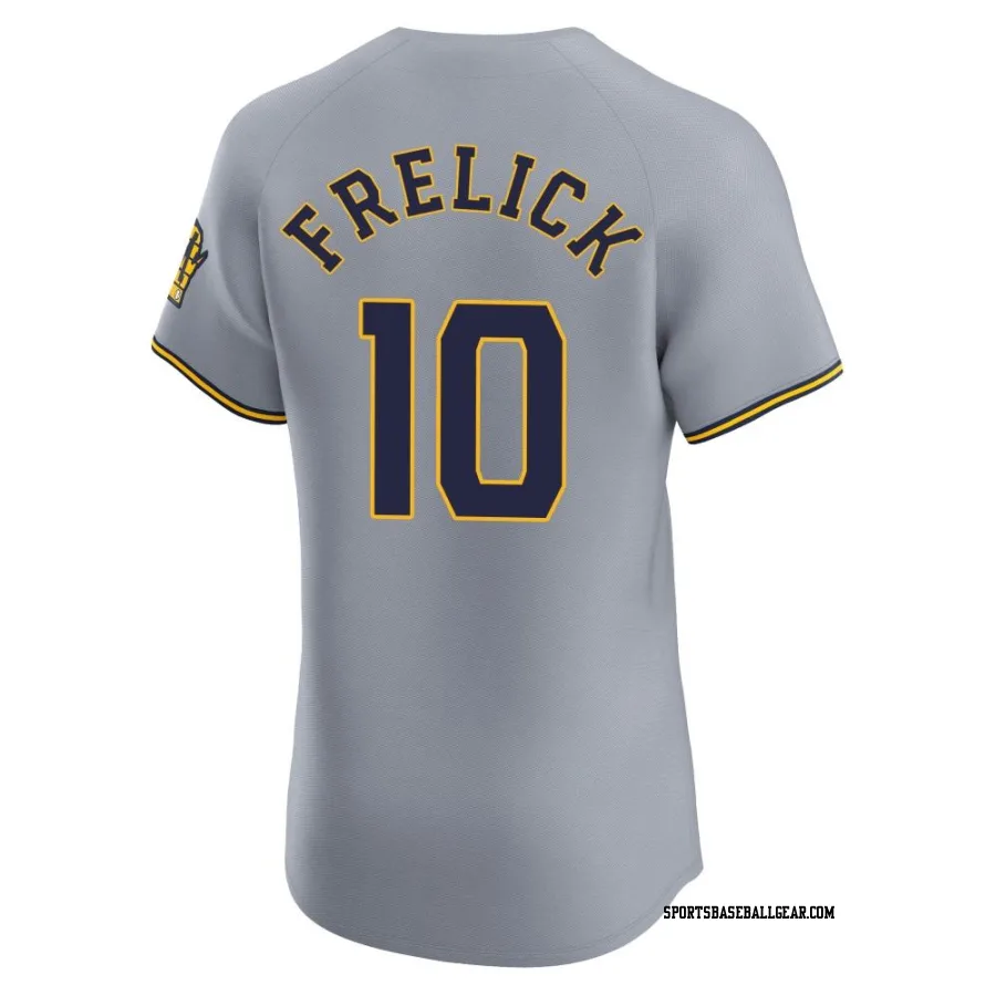 Get the Sal Frelick Men's Milwaukee Brewers Gray Elite Road Jersey, showcasing the latest design and premium quality for dedicated fans. Elevate your baseball wardrobe now!