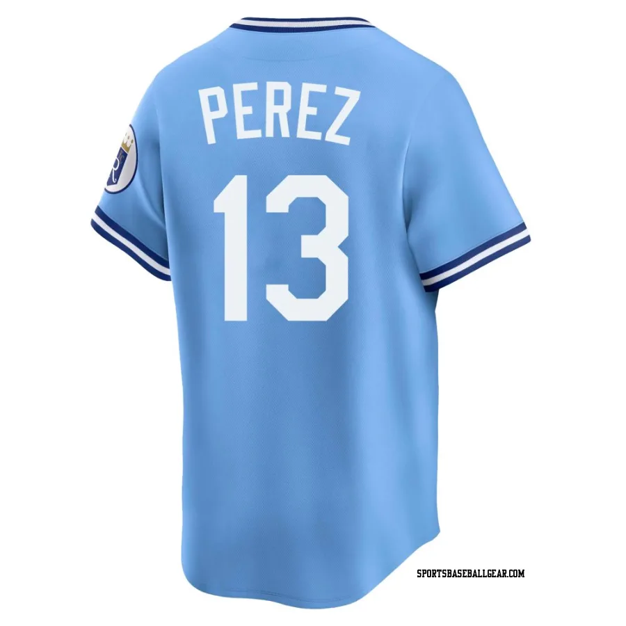 Get the Salvador Perez Men's Kansas City Royals Light Blue Limited Throwback Cooperstown Collection Jersey, showcasing the latest design and premium quality for dedicated fans. Elevate your baseball wardrobe now!