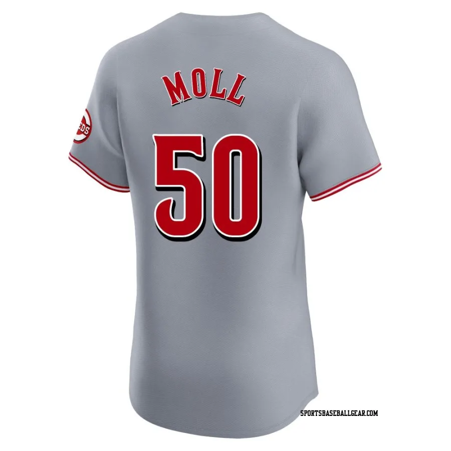 Get the Sam Moll Men's Cincinnati Reds Gray Elite Road Jersey, showcasing the latest design and premium quality for dedicated fans. Elevate your baseball wardrobe now!