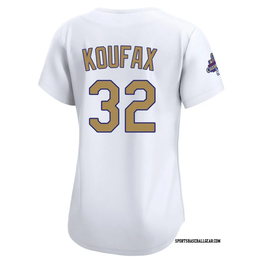 Sandy Koufax Women's Los Angeles Dodgers Gold Limited White 2025 Collection Jersey