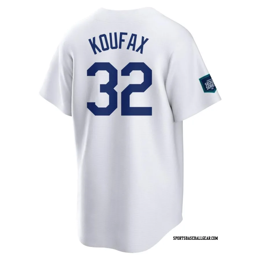 Get the Sandy Koufax Youth Los Angeles Dodgers White Replica 2024 World Tour Seoul Series Home Jersey, showcasing the latest design and premium quality for dedicated fans. Elevate your baseball wardrobe now!