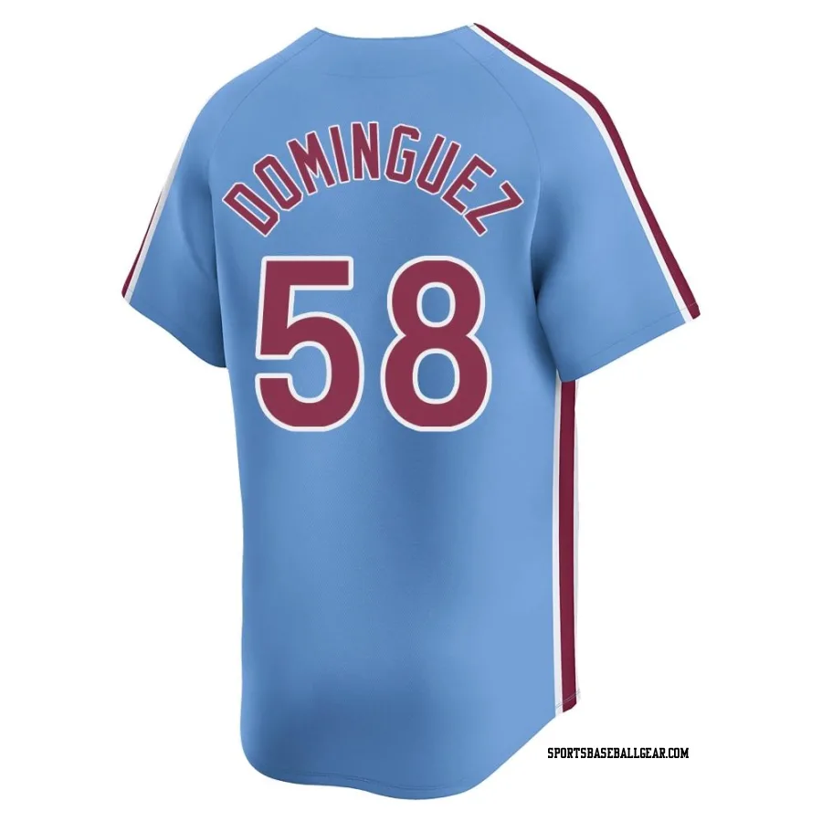 Get the Seranthony Dominguez Men's Philadelphia Phillies Light Blue Limited Alternate Jersey, showcasing the latest design and premium quality for dedicated fans. Elevate your baseball wardrobe now!