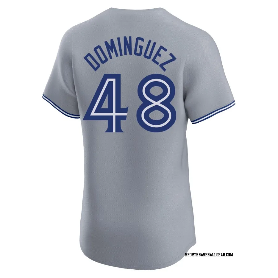 Get the Seranthony Dominguez Men's Toronto Blue Jays Gray Elite Road Jersey, showcasing the latest design and premium quality for dedicated fans. Elevate your baseball wardrobe now!