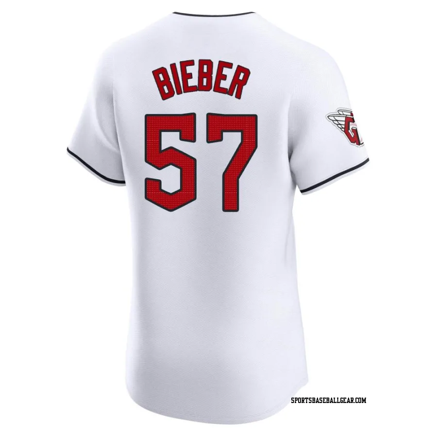 Shane Bieber Men's Cleveland Guardians White Elite Home Jersey