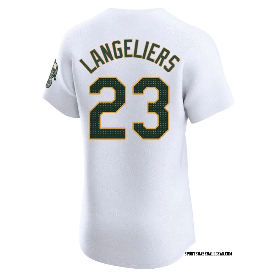 Get the Shea Langeliers Men's Oakland Athletics White Elite Home Jersey, showcasing the latest design and premium quality for dedicated fans. Elevate your baseball wardrobe now!