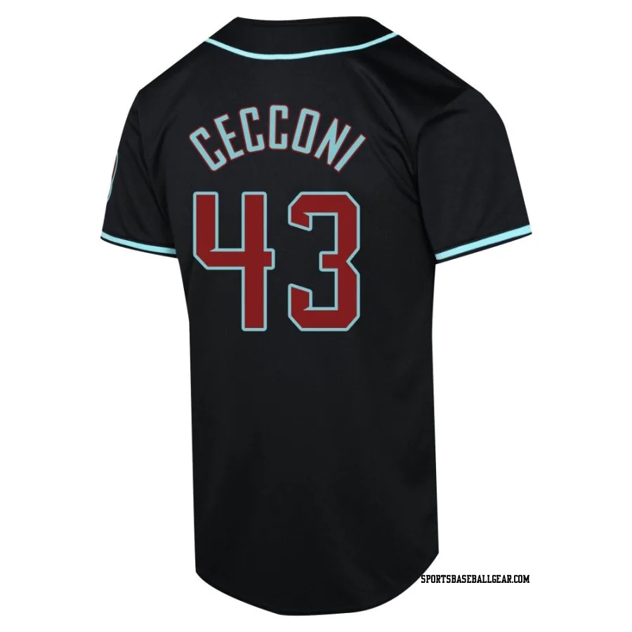 Get the Slade Cecconi Youth Arizona Diamondbacks Black Limited Alternate Jersey, showcasing the latest design and premium quality for dedicated fans. Elevate your baseball wardrobe now!