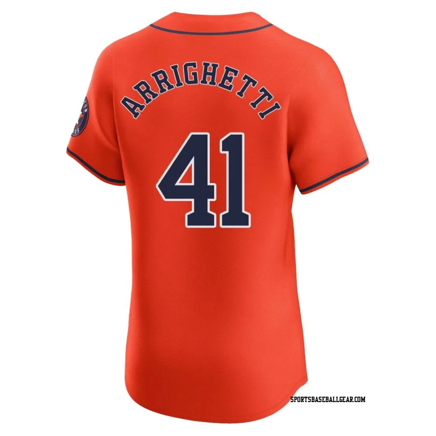 Get the Spencer Arrighetti Men's Houston Astros Orange Elite Alternate Vapor Premier Jersey, showcasing the latest design and premium quality for dedicated fans. Elevate your baseball wardrobe now!