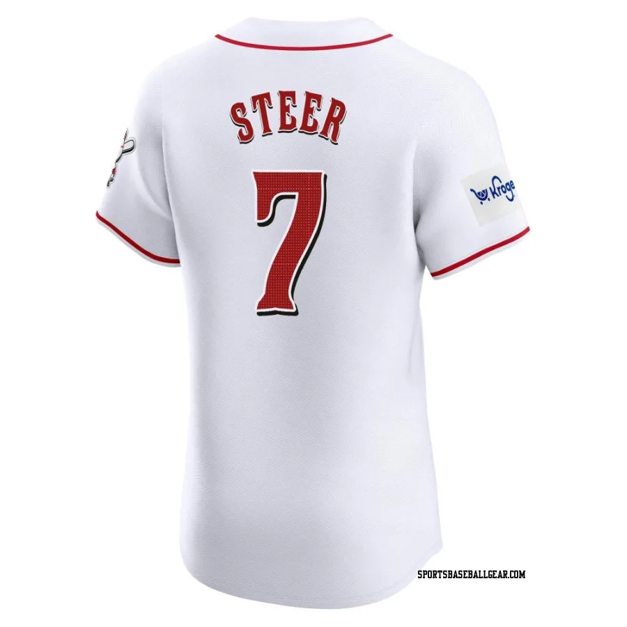 Get the Spencer Steer Men's Cincinnati Reds White Elite Home Patch Jersey, showcasing the latest design and premium quality for dedicated fans. Elevate your baseball wardrobe now!