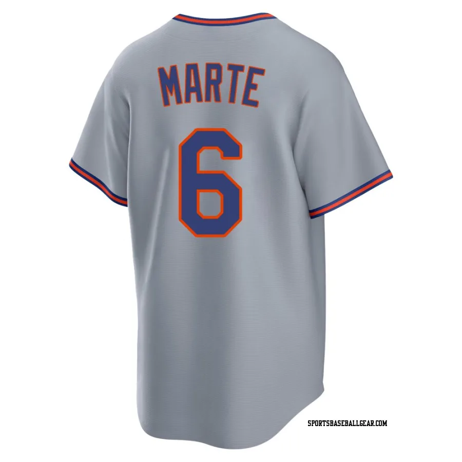 Get the Starling Marte Men's New York Mets Gray Replica Away 2.0 Jersey, showcasing the latest design and premium quality for dedicated fans. Elevate your baseball wardrobe now!