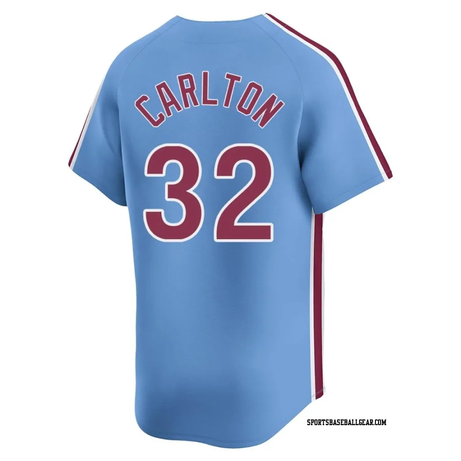 Get the Steve Carlton Men's Philadelphia Phillies Light Blue Limited Alternate Jersey, showcasing the latest design and premium quality for dedicated fans. Elevate your baseball wardrobe now!