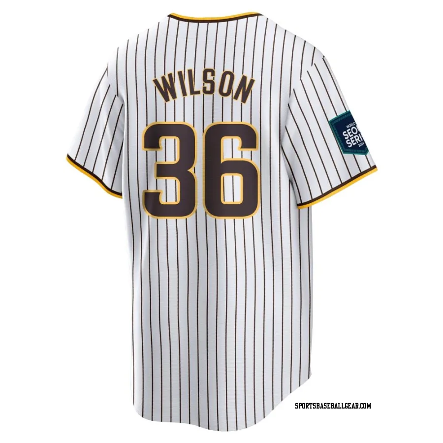 Get the Steven Wilson Youth San Diego Padres White Replica 2024 World Tour Seoul Series Home Jersey, showcasing the latest design and premium quality for dedicated fans. Elevate your baseball wardrobe now!