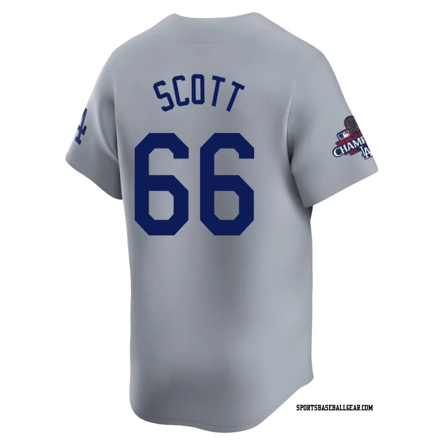 Get the Tanner Scott Men's Los Angeles Dodgers Gray Limited Away World Series Champions Jersey, showcasing the latest design and premium quality for dedicated fans. Elevate your baseball wardrobe now!