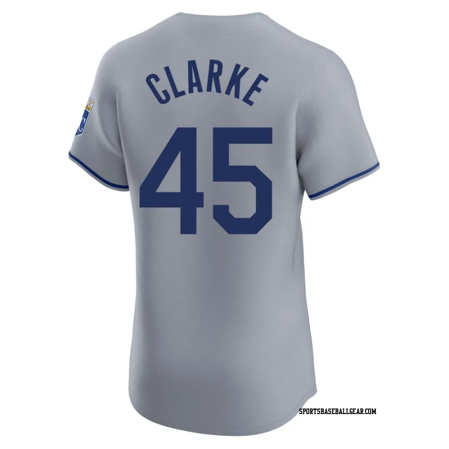 Get the Taylor Clarke Men's Kansas City Royals Gray Elite Road Jersey, showcasing the latest design and premium quality for dedicated fans. Elevate your baseball wardrobe now!