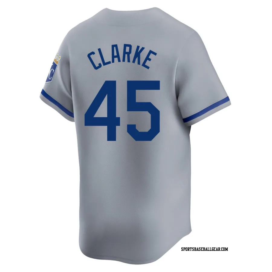 Get the Taylor Clarke Men's Kansas City Royals Gray Limited Away Jersey, showcasing the latest design and premium quality for dedicated fans. Elevate your baseball wardrobe now!
