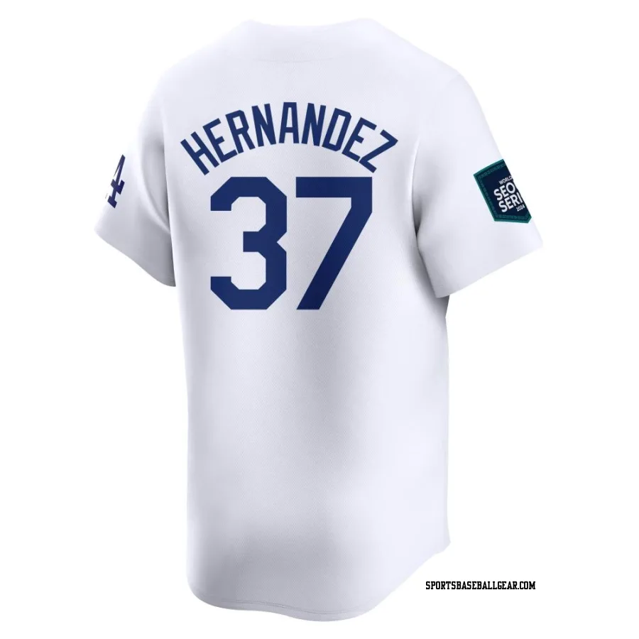 Get the Teoscar Hernandez Youth Los Angeles Dodgers White Limited 2024 World Tour Seoul Series Home Jersey, showcasing the latest design and premium quality for dedicated fans. Elevate your baseball wardrobe now!