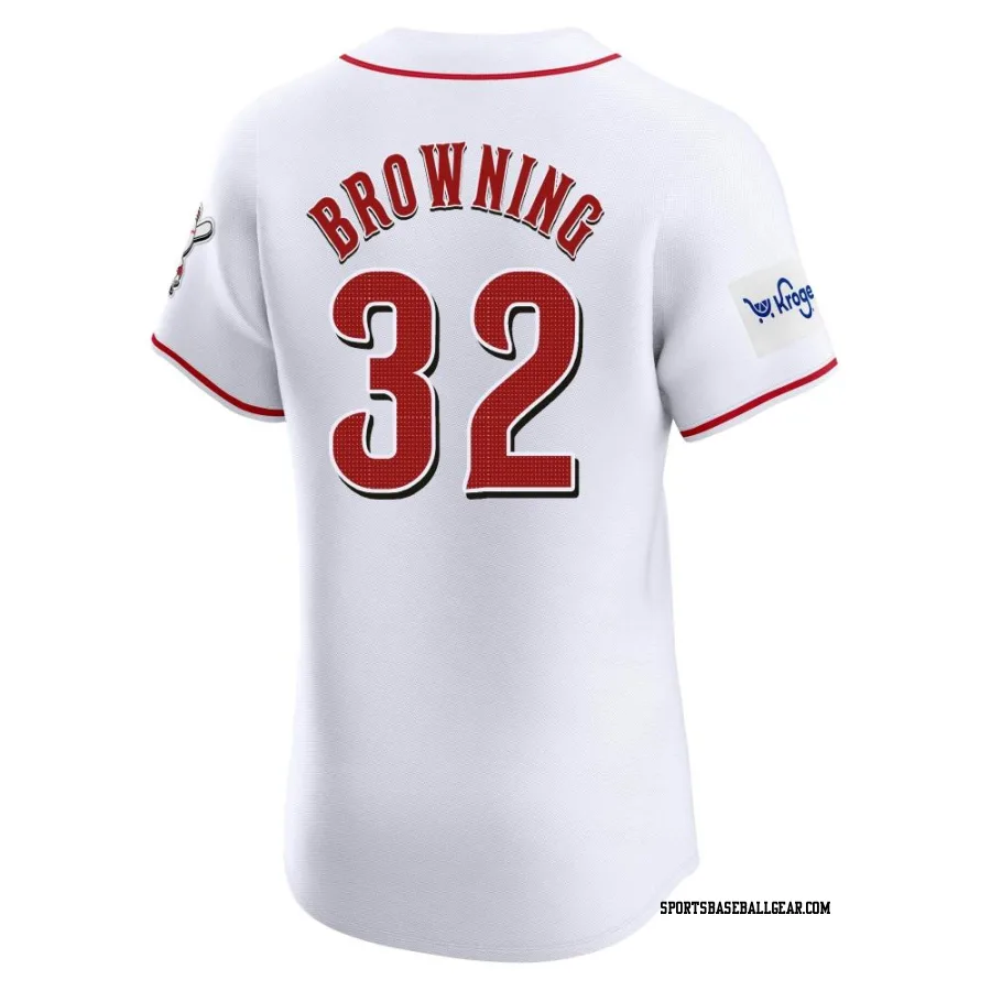 Tom Browning Men's Cincinnati Reds White Elite Home Patch Jersey