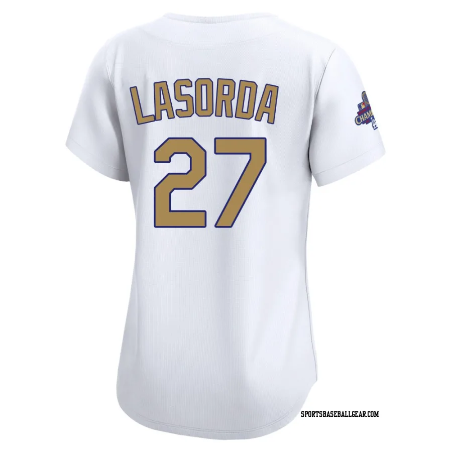 Tommy Lasorda Women's Los Angeles Dodgers Gold Limited White 2025 Collection Jersey