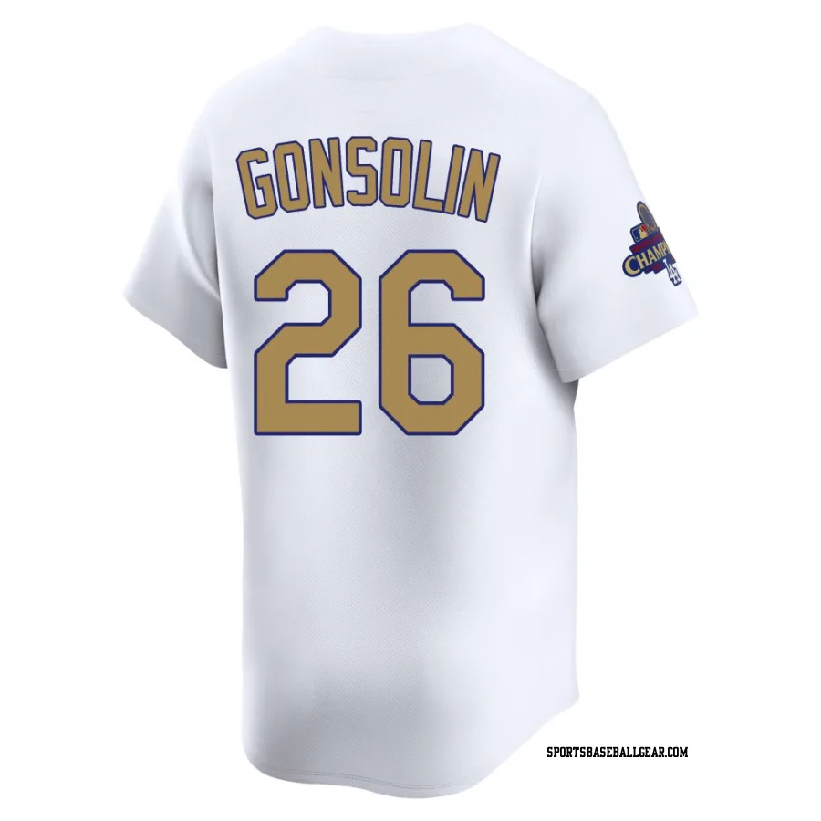 Get the Tony Gonsolin Men's Los Angeles Dodgers Gold Limited White 2025 Collection Jersey, showcasing the latest design and premium quality for dedicated fans. Elevate your baseball wardrobe now!