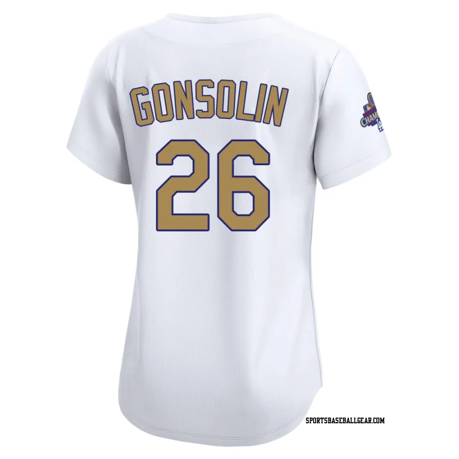 Get the Tony Gonsolin Women's Los Angeles Dodgers Gold Limited White 2025 Collection Jersey, showcasing the latest design and premium quality for dedicated fans. Elevate your baseball wardrobe now!