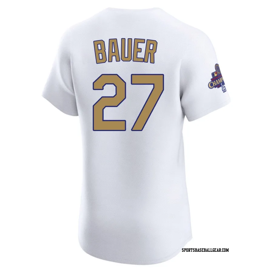Trevor Bauer Men's Los Angeles Dodgers Gold Elite White 2025 Collection Jersey