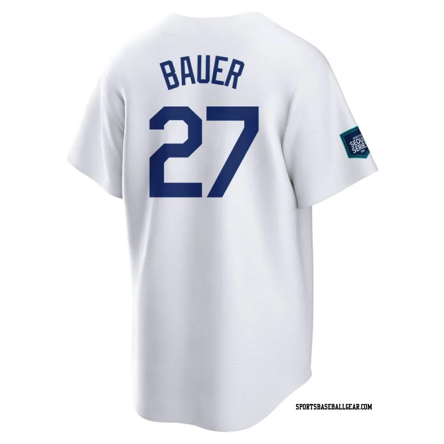 Trevor Bauer Men's Los Angeles Dodgers White Replica 2024 World Tour Seoul Series Home Jersey