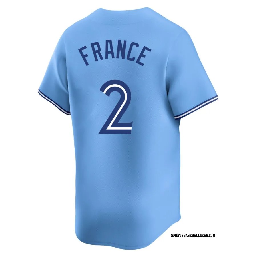 Get the Ty France Men's Toronto Blue Jays Blue Limited Powder Alternate Jersey, showcasing the latest design and premium quality for dedicated fans. Elevate your baseball wardrobe now!