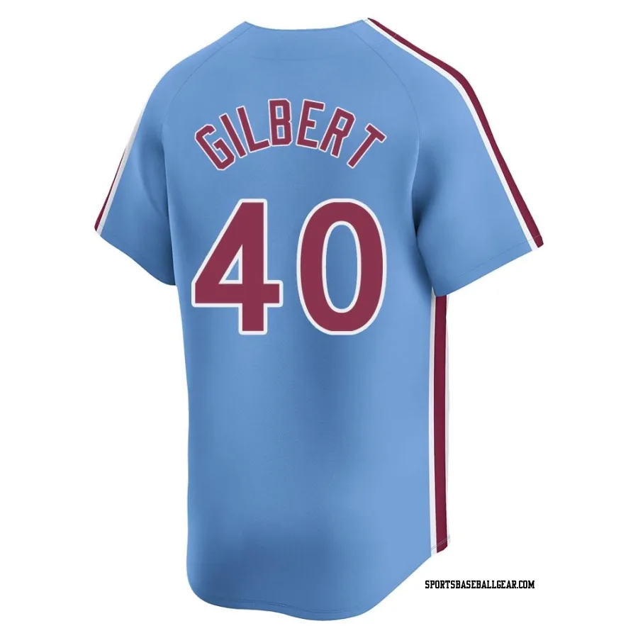 Get the Tyler Gilbert Men's Philadelphia Phillies Light Blue Limited Alternate Jersey, showcasing the latest design and premium quality for dedicated fans. Elevate your baseball wardrobe now!