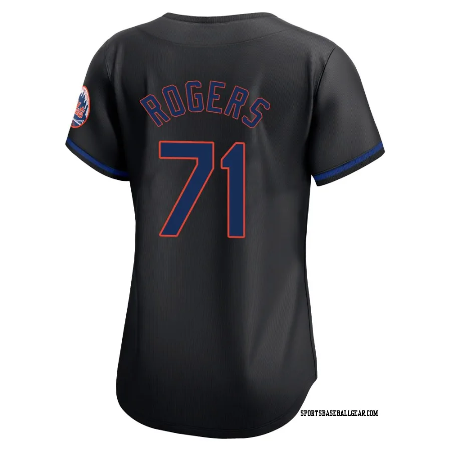 Get the Tyler Rogers Women's New York Mets Black Limited Alternate Jersey, showcasing the latest design and premium quality for dedicated fans. Elevate your baseball wardrobe now!
