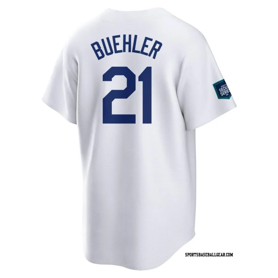 Get the Walker Buehler Youth Los Angeles Dodgers White Replica 2024 World Tour Seoul Series Home Jersey, showcasing the latest design and premium quality for dedicated fans. Elevate your baseball wardrobe now!