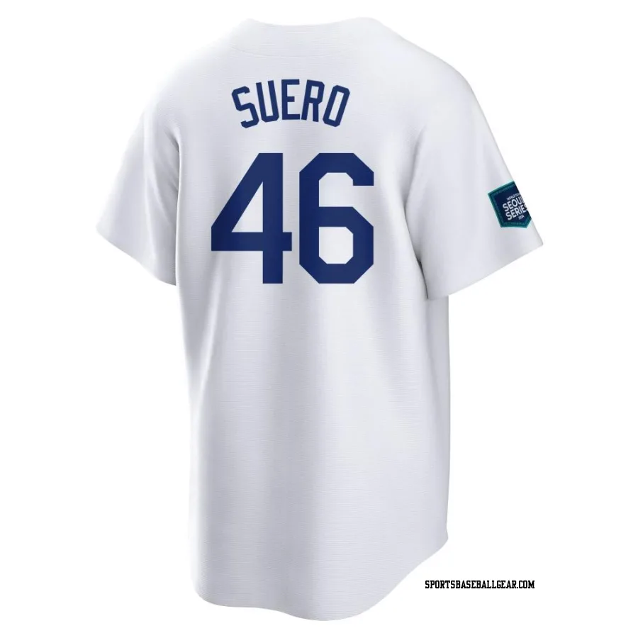 Wander Suero Men's Los Angeles Dodgers White Replica 2024 World Tour Seoul Series Home Jersey