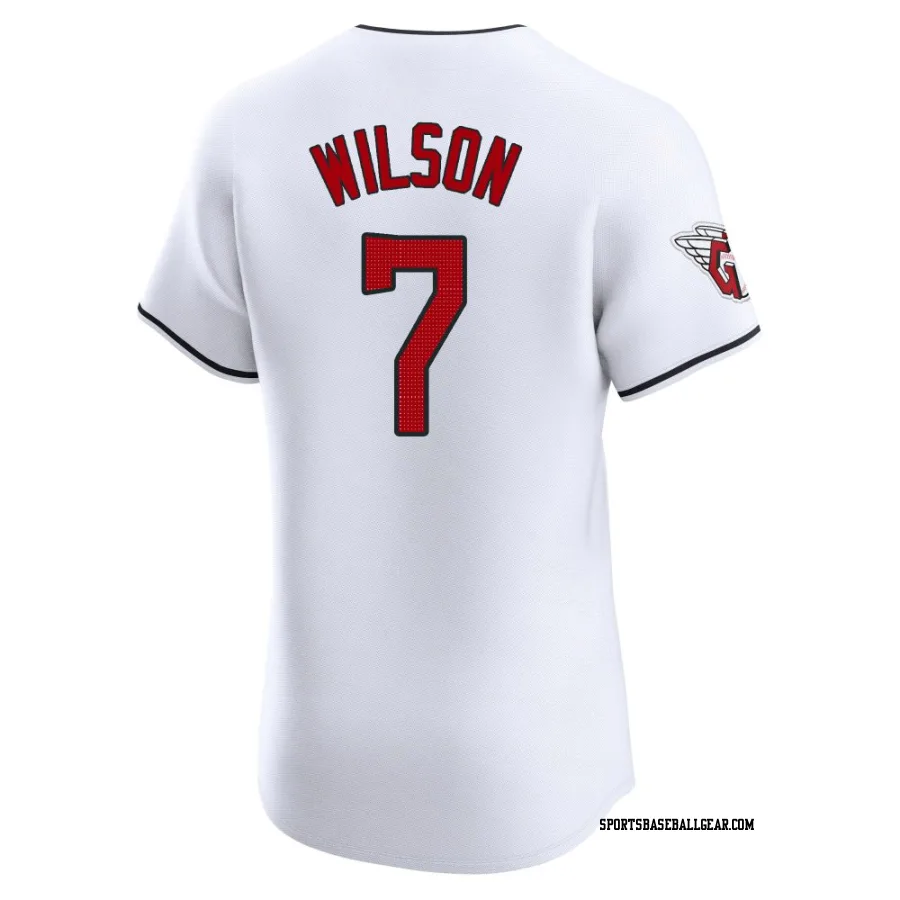 Get the Will Wilson Men's Cleveland Guardians White Elite Home Jersey, showcasing the latest design and premium quality for dedicated fans. Elevate your baseball wardrobe now!