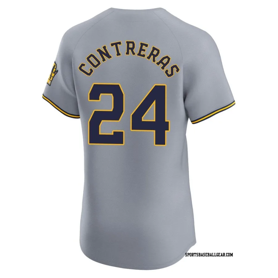 Get the William Contreras Men's Milwaukee Brewers Gray Elite Road Jersey, showcasing the latest design and premium quality for dedicated fans. Elevate your baseball wardrobe now!