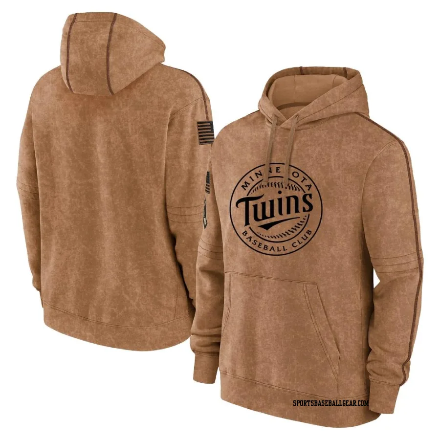 Get the Women's Minnesota Twins Brown 2023 Salute to Service Pullover Hoodie, showcasing the latest design and premium quality for dedicated fans. Elevate your baseball wardrobe now!
