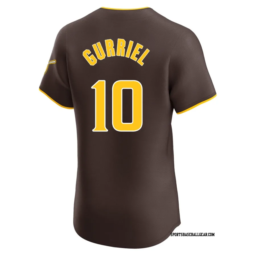 Get the Yuli Gurriel Men's San Diego Padres Brown Elite Road Vapor Premier Jersey, showcasing the latest design and premium quality for dedicated fans. Elevate your baseball wardrobe now!