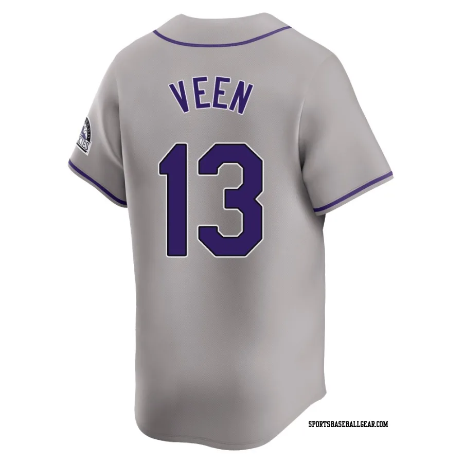 Get the Zac Veen Men's Colorado Rockies Gray Limited Road Jersey, showcasing the latest design and premium quality for dedicated fans. Elevate your baseball wardrobe now!